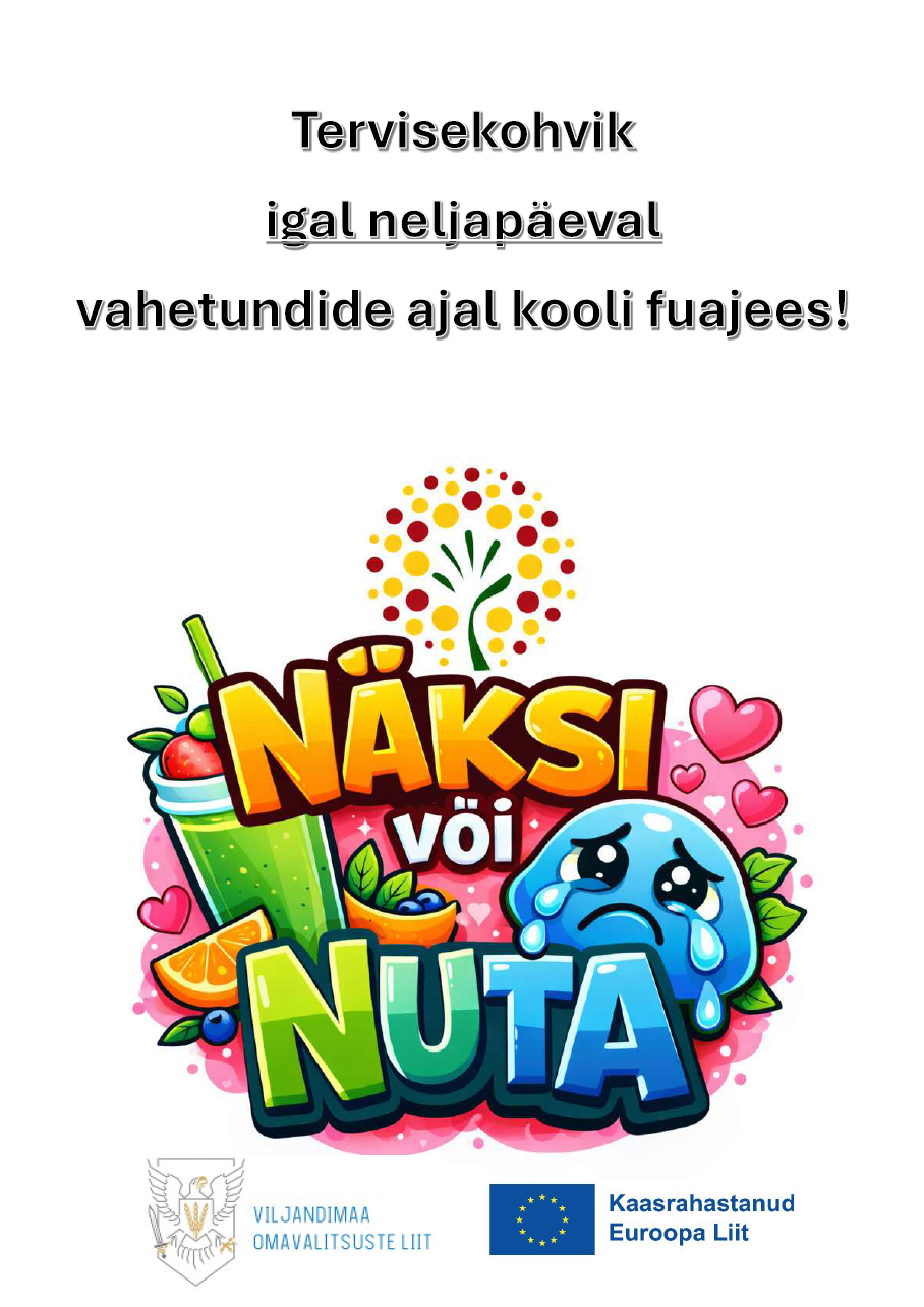 Rahakratt Viljandimaal Loomise kuupäev 18.03.2026 Autor Kadri Vallimäe-Pähk Naljakad koolilood Loomise kuupäev 18.03.2026 Autor Kadri Vallimäe-Pähk Avatud uste päev Põltsamaa Ühisgümnaasium Loomise kuupäev 18.03.2026 Autor Kadri Vallimäe-Pähk Eesti Vabariik 108 Loomise kuupäev 09.02.2026 Autor Kadri Vallimäe-Pähk Vaata rohkem